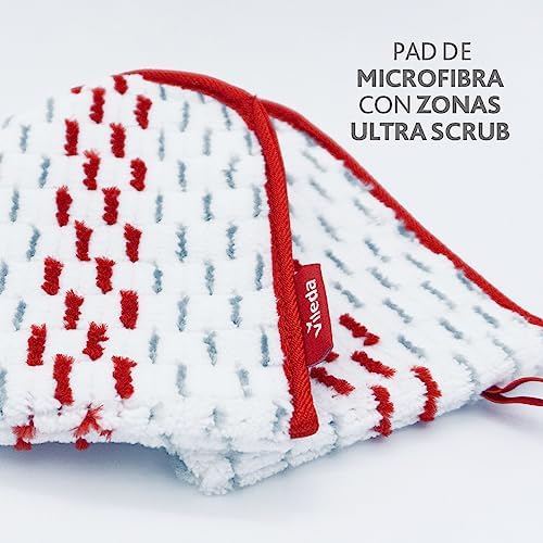 Microfibre pad lifts and captures dirt and won’t just push it around.